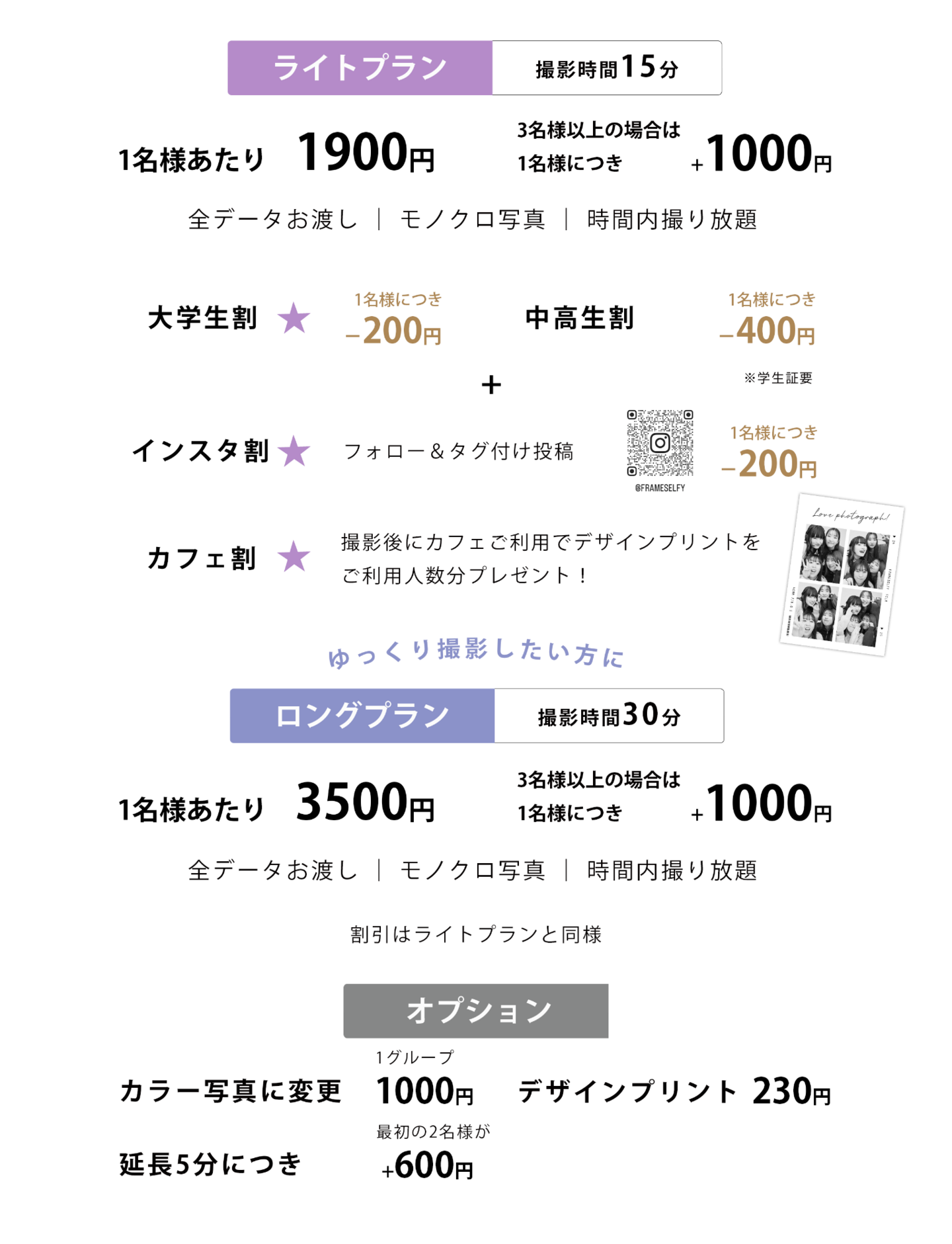 撮影後は併設のカフェで友人と写真を見て振り返ったりプリントをしたりとゆったりとお楽しみ下さい。