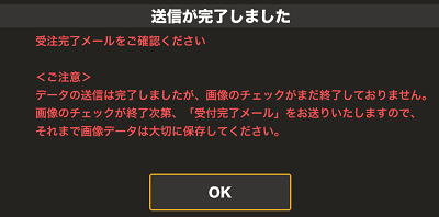 受付完了メール、プリント業務は、当店営業時間内に行われます。定休日、臨時休業日にご注意下さい。