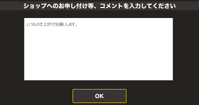 フチ有り・マット紙・色補正などの希望は、ご請求先情報の入力画面最後の『コメント欄』にご指示下さい。